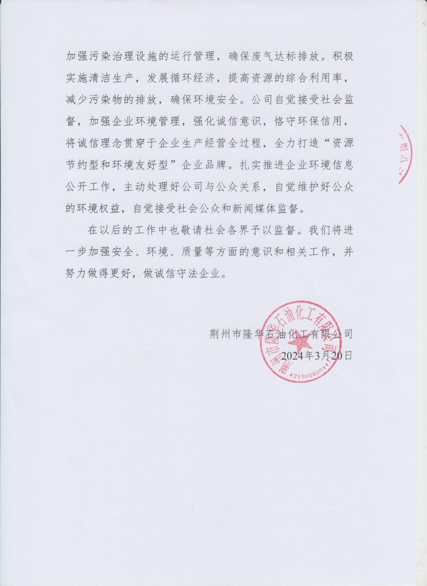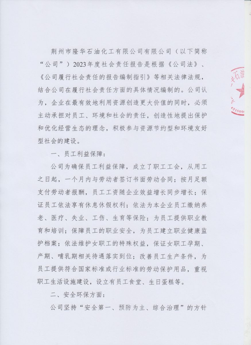 荊州市隆華石油化工有限公司2023年度社會責任報告